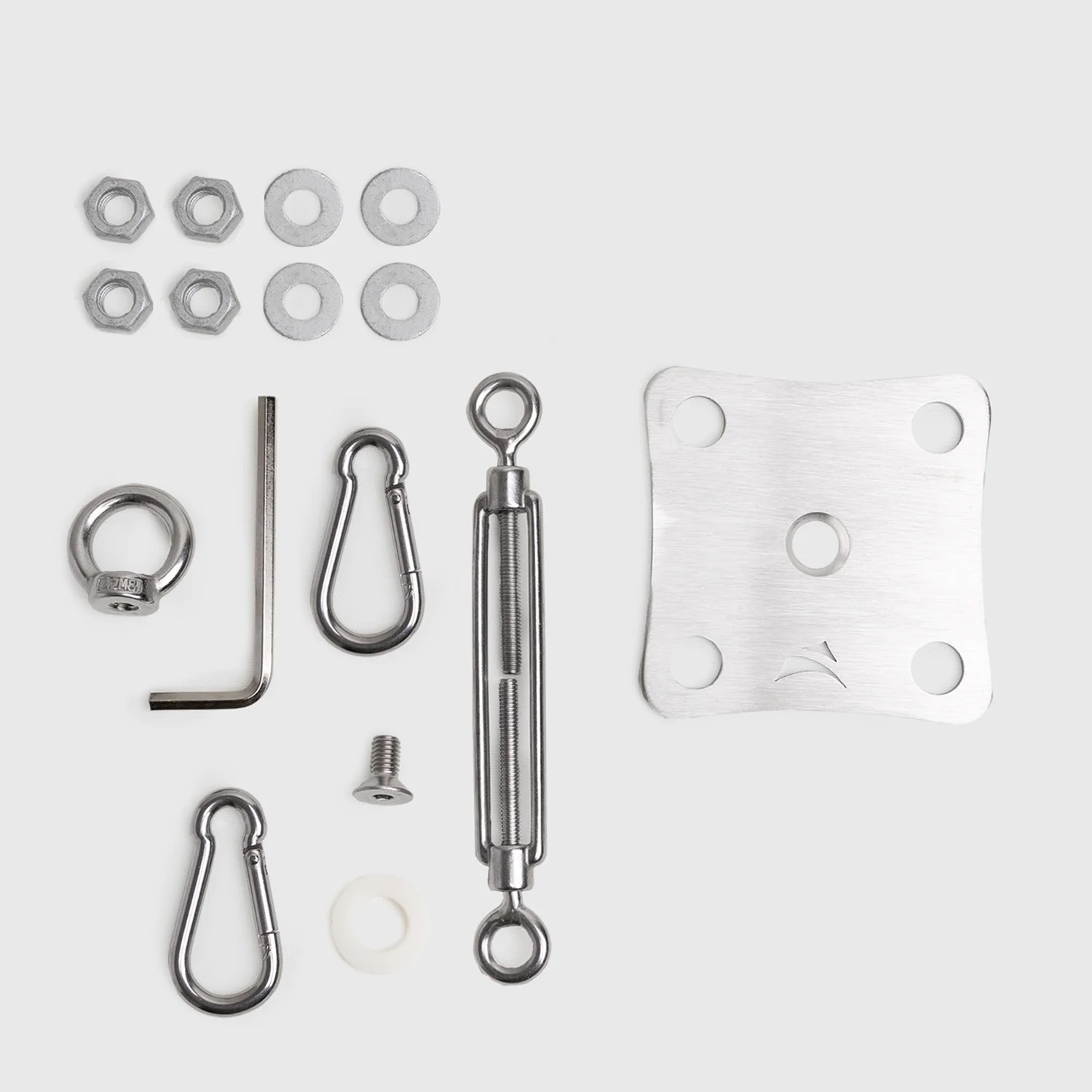 Le tendeur et les deux mousquetons pourraient être proposés en diamètre de 8 mm pour parfaire le caractère de robustesse de l’ensemble, car la plaque carrée inspire la robustesse Zobrazit více Zobrazit méně