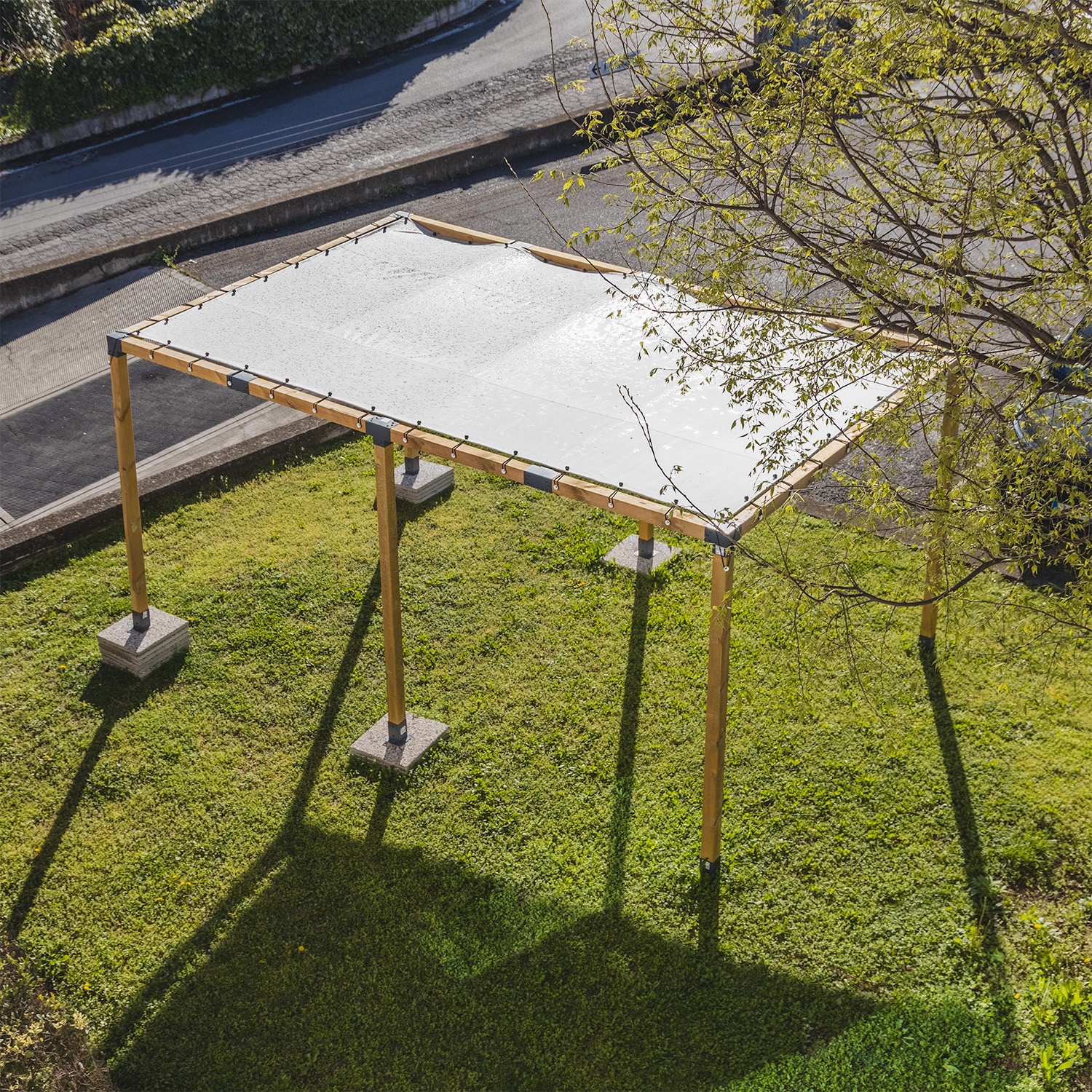 Stoprocentně nepromokavá a ekologická polypropylenová tkanina. Ideální pro zakrytí pergol nebo přístřešků pro auta, které chrání před deštěm, větrem a UV zářením.