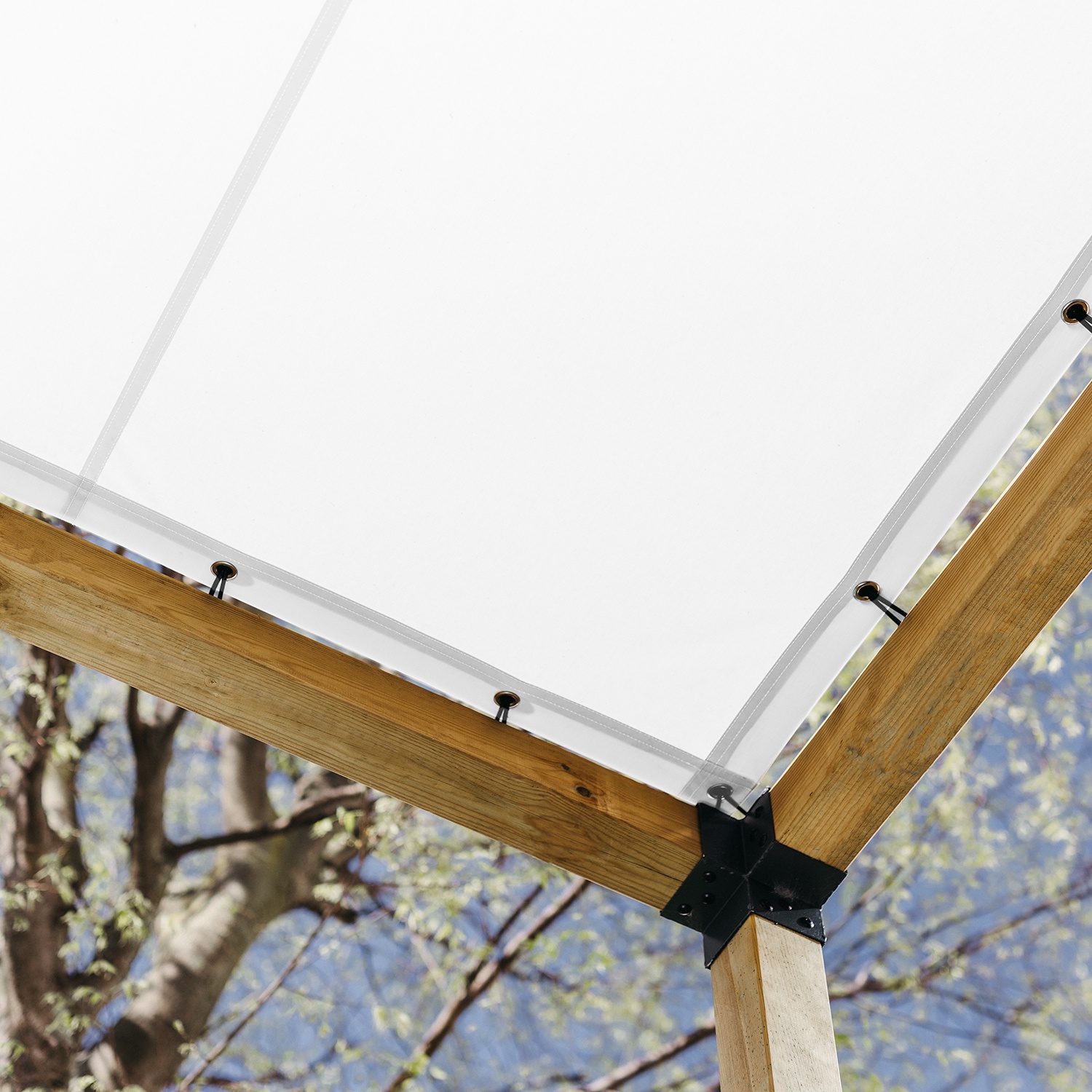 Naše plachty jsou vyráběny také na míru a lze je připevnit vodorovně nebo svisle, na železné, dřevěné i jiné materiálové pergoly. Lze je upevnit pomocí gumiček nebo knoflíků v závislosti na požadovaném estetickém efektu.
