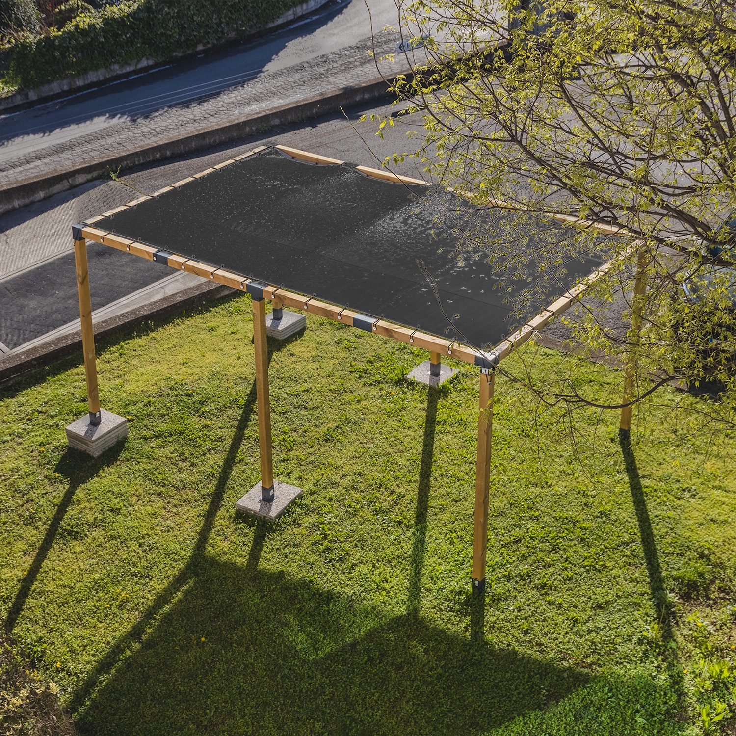 Stoprocentně nepromokavá a ekologická polypropylenová tkanina. Ideální pro zakrytí pergol nebo přístřešků pro auta, které chrání před deštěm, větrem a UV zářením.