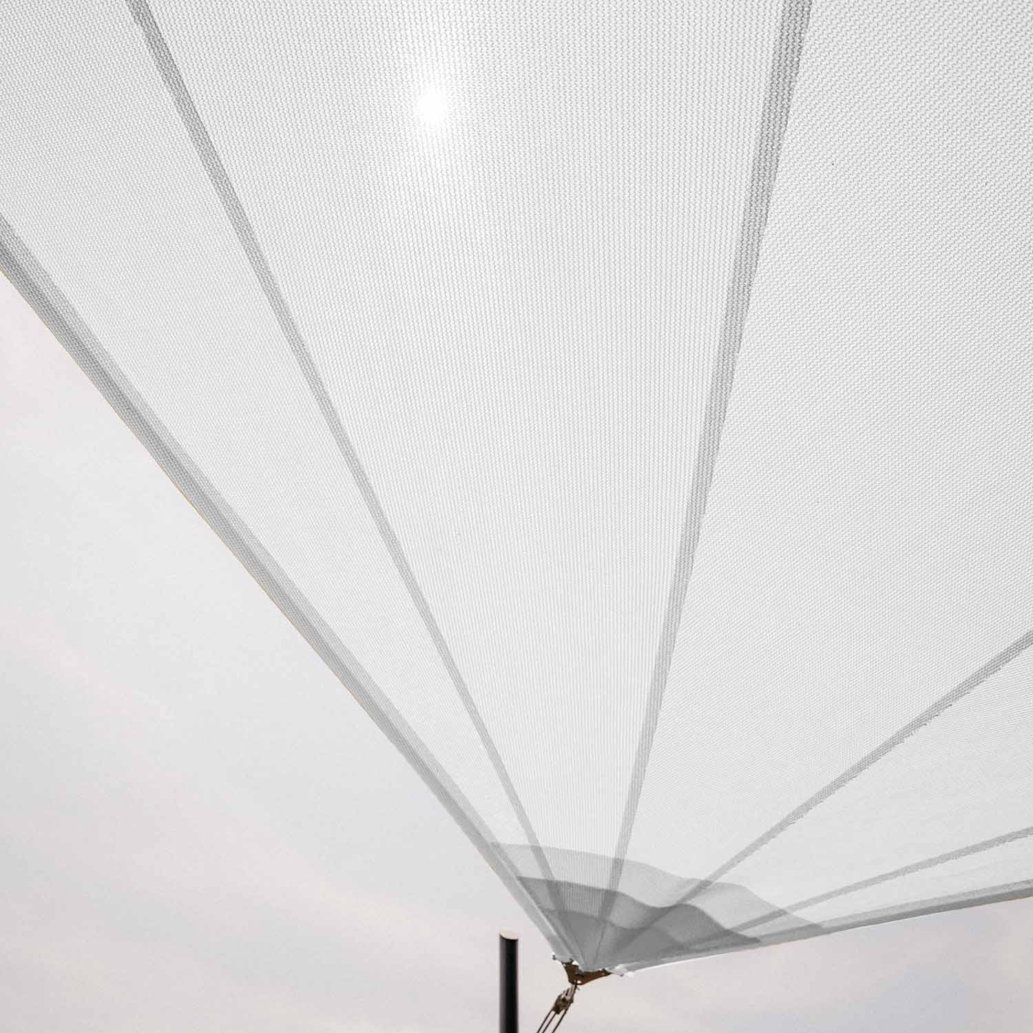 Solaria prodyšná je stínicí plachta s paprsčitým střihem vyrobená z prodyšné látky Meshnet® HDPE 320 , která chrání před intenzivním horkem, krupobitím a také před UV zářením a silným větrem.