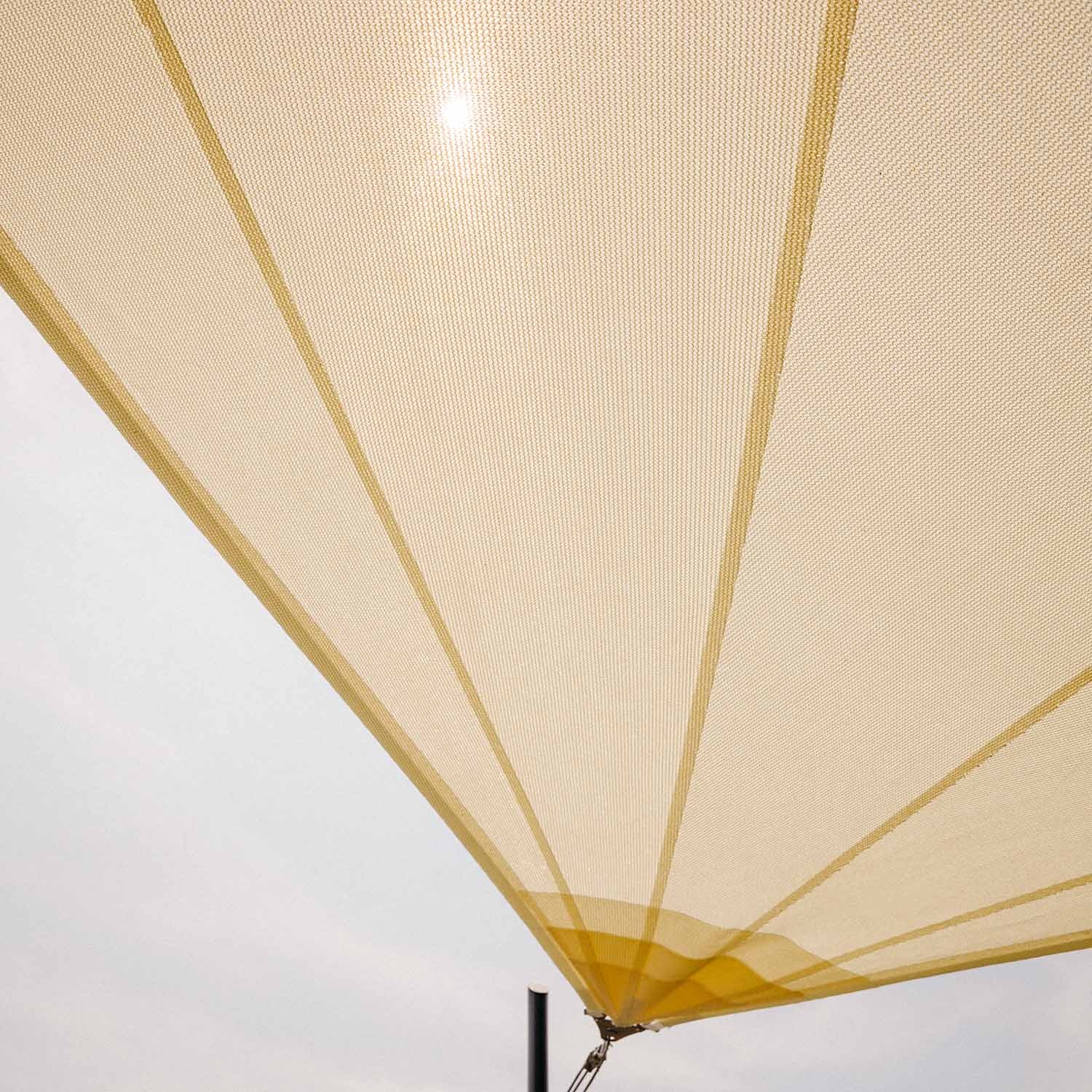 Solaria prodyšná je stínicí plachta s paprsčitým střihem vyrobená z prodyšné látky Meshnet® HDPE 320 , která chrání před intenzivním horkem, krupobitím a také před UV zářením a silným větrem.
