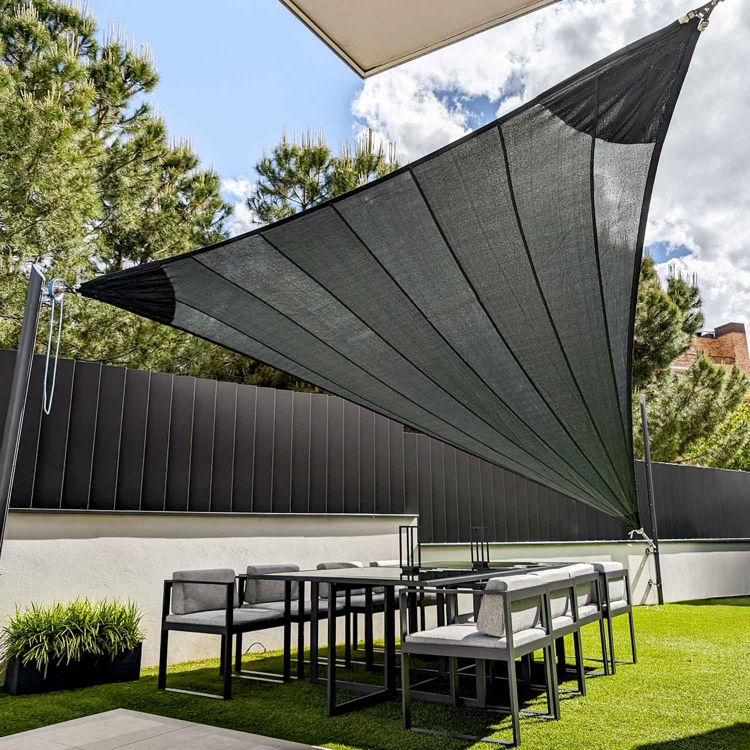 Prodyšná plachta vytváří vzdušnou plochu stínu, která je chráněna před UV zářením. Zároveň chrání před kroupami a poryvy větru.