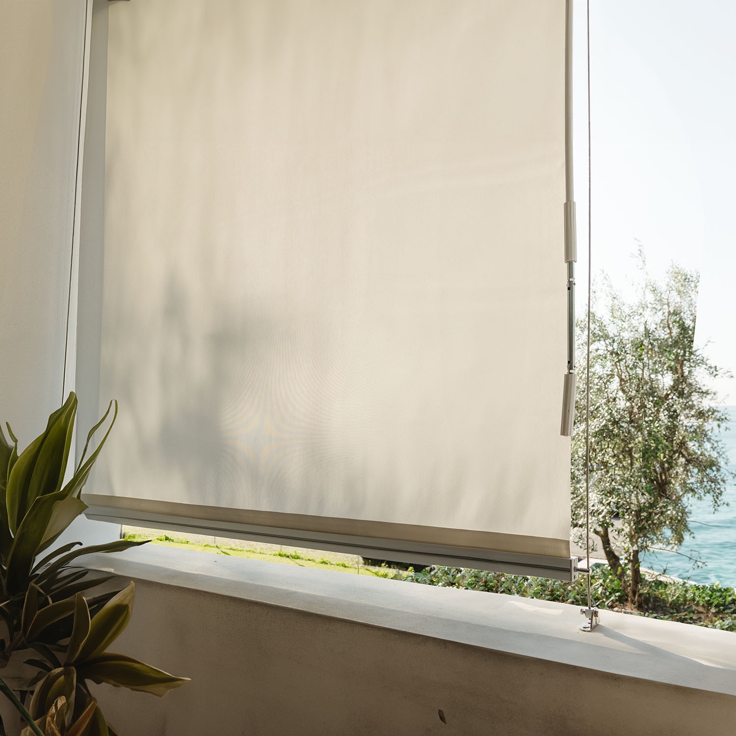 Reef Roll je vertikální markýza s bočními lanky , která snižuje vnitřní teplotu až o 9°C. Jde o praktické, rychlé řešení, které lze aplikovat na verandy, pergoly, výlohy, terasy a balkony .