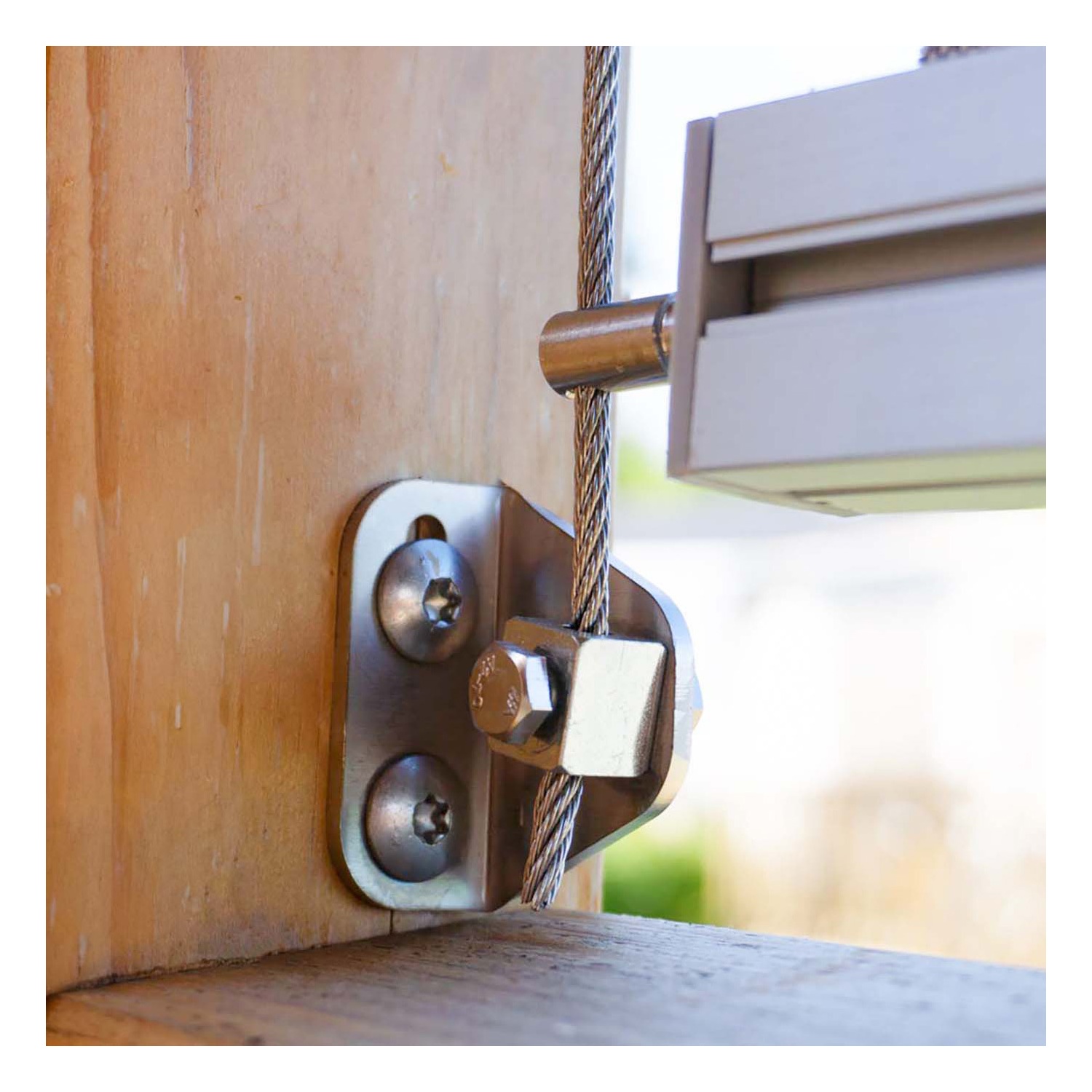 Boční lanka jsou z nerezové oceli 316, dodávají se již nařezaná na míru a umožňují vynikající odolnost proti větru.