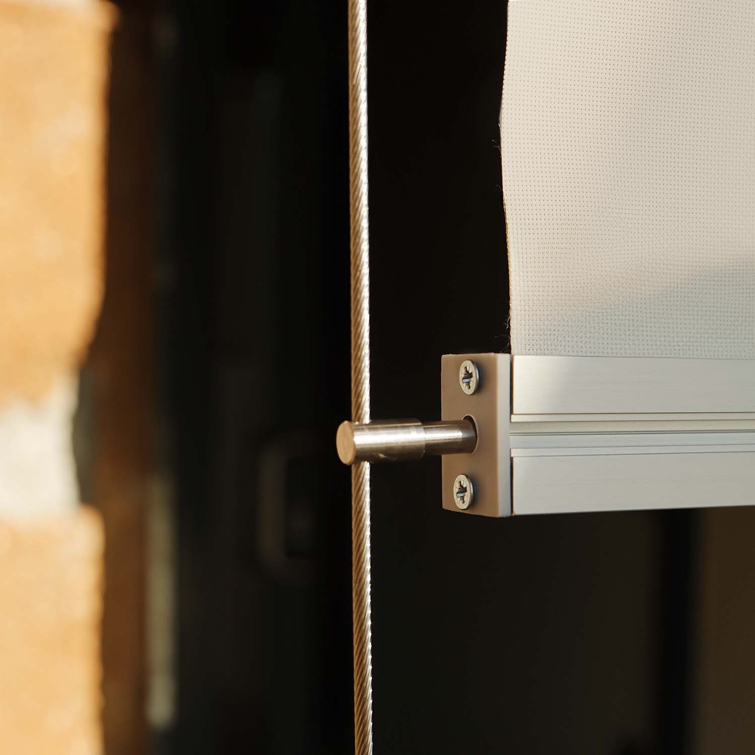 Ovládání sestupu látky, možné pomocí bočních kabelů, umožňuje zvolit požadovanou úroveň zastínění, dokonale odstíní/opraví interiéry před oslněním.